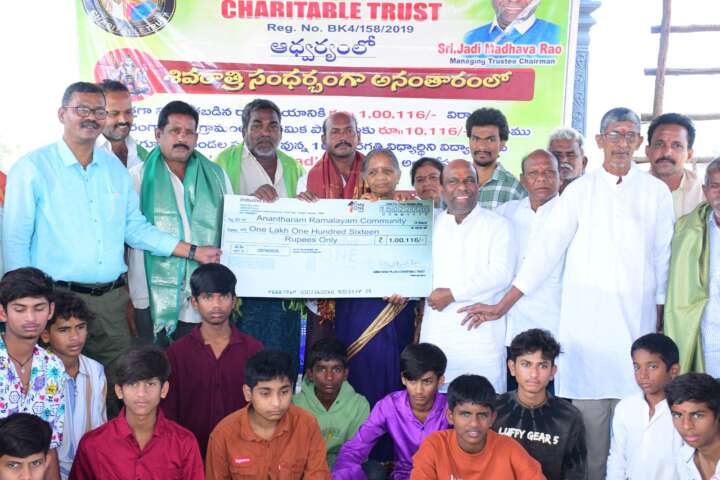 శివరాత్రి సందర్భంగా అనంతారం గ్రామంలోని రామాలయానికి అమ్మానాన్న చారిటబుల్ ట్రస్టు ఆధ్వర్యంలో ట్రస్ట్ మేనేజింగ్ డైరెక్టర్ జాడి మాధవరావు రూ.1,00,116/- విరాళం అందజేశారు.