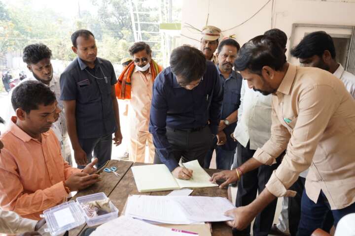 ఈ సందర్భంగా గోడౌన్లో భద్రపరిచిన ఈవీఎంలు, వీవీప్యాట్ యంత్రాలు ఉన్న గదులను పరిశీలించారు. అలాగే సీసీ కెమెరా గదిని సందర్శించి కెమెరాల పనితీరును తనిఖీ చేశారు. గోడౌన్ పరిసర ప్రాంతాన్ని పరిశుభ్రంగా ఉంచాలని, అనుమతి లేకుండా ఎవరినీ లోపలికి అనుమతించవద్దని సంబంధిత అధికారులకు, భద్రతా సిబ్బందికి సూచించారు. అనంతరం తనిఖీ రిజిస్టర్లో సంతకం చేశారు.